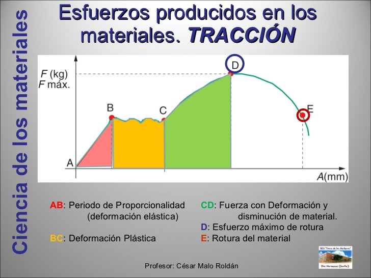 - Tracción: es el esfuerzo interno al que está sometido un cuerpo por la aplicación de dos fuerzas que actúan en sentido opuesto, y tienden a estirarlo.